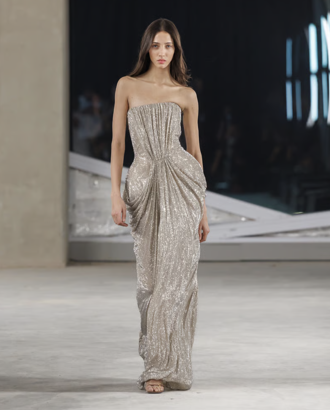 In fact, the mood of the shows varied from day to day: the long-established designer Adnan Akbar crafted evening gowns with his haute couture approach to embroidery, tulle, organza, and silk. Ashwaq Almarshad and Atelier Hekayat also explored luxury and precious materials, utilizing transparency and playing with volume, with long trains, all-over embroidery, and opulent draping that resonated with the aesthetics of the Middle Eastern market.